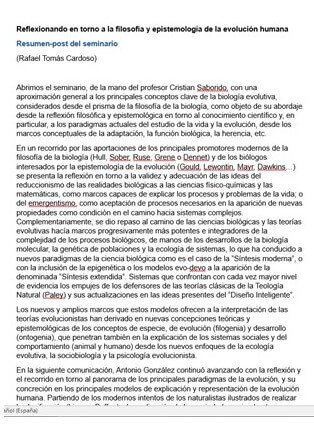 Reflexionando en torno a la filosofía y epistemología de la evolución humana